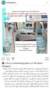 ۱۷ هزار لیتر مواد ضدعفونی در بستههای یک لیتری به مناطق محروم ارسال شد که بخشی از این بستهها به کودکان کار اختصاص پیدا کرد.
