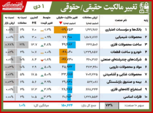 بیشترین تغییر مالکیت حقیقی و حقوقی در بورس +جدول