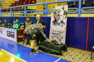 بازیکنان دو تیم پتروشیمی بندرامام و رعد پدافند شهرکرد پیش از آغاز بازیشان به سپهبد شهید حاج قاسم سلیمانی ادای احترام کردند.