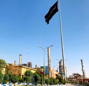 به اهتزاز درآمدن پرچم عزا در پتروشیمی شهید تندگویان به نشانه همدردی با حادثه دیدگان آبادان