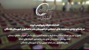 شرکت پتروشیم اروند در راستای مسئولیتهای اجتماعی و حمایت از دانشآموزان کمبضاعت، تعداد ۳۳۰۰ کیف و لوازم التحریر از یک انجمن خیریه حامی آسیبدیدگان اجتماعی خریداری و به میان دانشآموزان کم بضاعت کمیته امداد شهرهای ماهشهر، بندرامام خمینی، شادگان و زندان شهرستان بندر ماهشهر توزیع کرد.