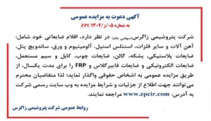 آگهی دعوت به مزایده عمومی شرکت پتروشیمی زاگرس به شماره ۰۵/ز/ZPC۱۴۰۲
