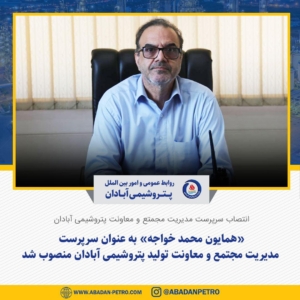 «همایون محمد خواجه» به عنوان مدیریت مجتمع پتروشیمی آبادان منصوب شد.