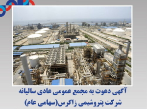 انتشار آگهی دعوت به مجمع عمومی عادی سالیانه شرکت پتروشیمی زاگرس(سهامی عام)