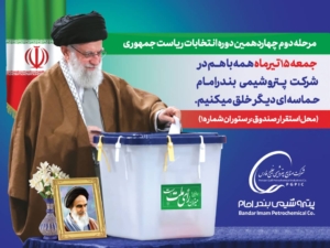 شرکت پتروشیمی بندرامام در راستای انجام مسئولیت های اجتماعی و افزایش مشارکت و حضور پرشور و حماسی مردم در انتخابات و تحقق بیانات رهبر معظم انقلاب، با تدارک ویژهبرنامهای با حضور کارکنان و خانوادهها و اجرای برنامههای فرهنگی به استقبال دور دوم چهاردهمین دوره انتخابات ریاست جمهوری میرود.