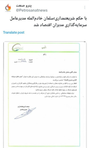 مدیرعامل شرکت صنایع پتروشیمی خلیج فارس در حکمی سلمان خادمالمله را به مدیرعاملی سرمایهگذاری مدبران اقتصاد منصوب کرد.