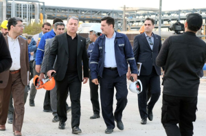 در ادامه این بازدید، دکتر پهلوانی و هیئت همراه با حضور در محل پروژه برج تغلیظ خوراک رافینت ۱ و مخازن، کلنگ احداث این پروژه زده شد.