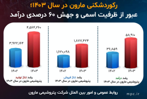 رکوردشکنی پتروشیمی مارون در سال ۱۴۰۳؛ جهش تاریخی ۶۰ درصدی درآمد و عبور از ظرفیت اسمی تولید