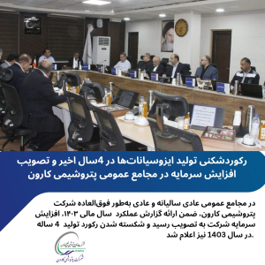 رکوردشکنی تولید ایزوسیاناتها در ۴سال اخیر و تصویب افزایش سرمایه در مجامع عمومی پتروشیمی کارون