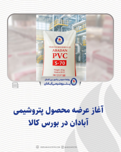 بهگزارش خبرگزاری پتروشیمی ایران (ایپنا)، به نقل از روابطعمومی شرکت پتروشیمی آبادان، محصول پلیوینیل کلراید (PVC) گرید S70 این شرکت برای نخستینبار پس از توقف طولانی در بورس کالای ایران عرضه شد