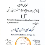 در یازدهمین دوره جایزه تعالی صنعت پتروشیمی که با حضور معاون وزیر نفت برگزار شد، پتروشیمی ایلام موفق به دریافت دو عنوان برتر این جایزه شد.