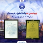 شرکت پتروشیمی جم در بیستوسومین جشنواره برگزیدگان پژوهش و فناوری استان بوشهر واحد تحقیق و توسعه برتر سال ۱۴۰۱ شد.